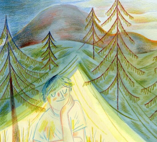 Illustration for the poem "Il Campeggio", from Ambiente Rodari, an anthology of nature-themed poems by Gianni Rodari. Published by Einaudi Ragazzi