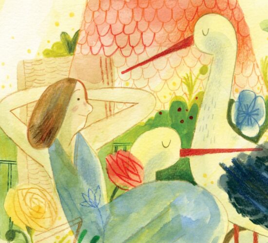 Illustration for the short story O Bocianie ("The Stork"), from the collection Bajki Nasenne. Written by Marek and Marta Niwald and curated by Joanna Concejo. A one-off special publication in support of one of the biggest polish charities, Wielka Orkiestra Świątecznej Pomocy, in which 22